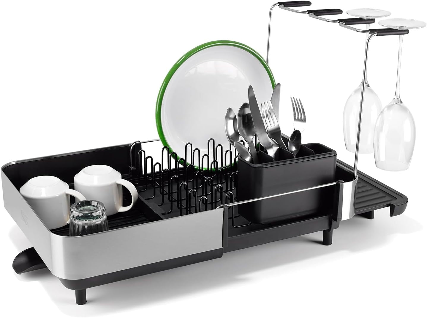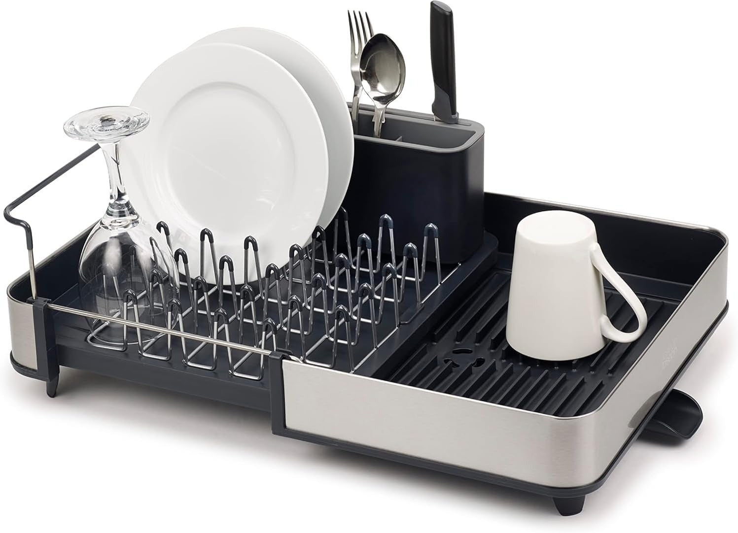 Joseph Joseph Extendable Dish Drying Rack with Dual Parts - Stainless Steel, Non-Scratch, Movable Utensil Drainer & Drainage Spout, Gray
